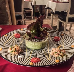 We divided our four days in France evenly between Normandy and Paris. We began in Honfleur, a small seaside town with a large basin in its center that reflected yellow shop lights in the evening. We found a nice restaurant for dinner but struggled to order food (a recurring issue). Pete wasn’t expecting a lump of lentils wrapped in cucumber and decorated with an enormous lettuce leaf when he ordered something that we guessed would be salmon.